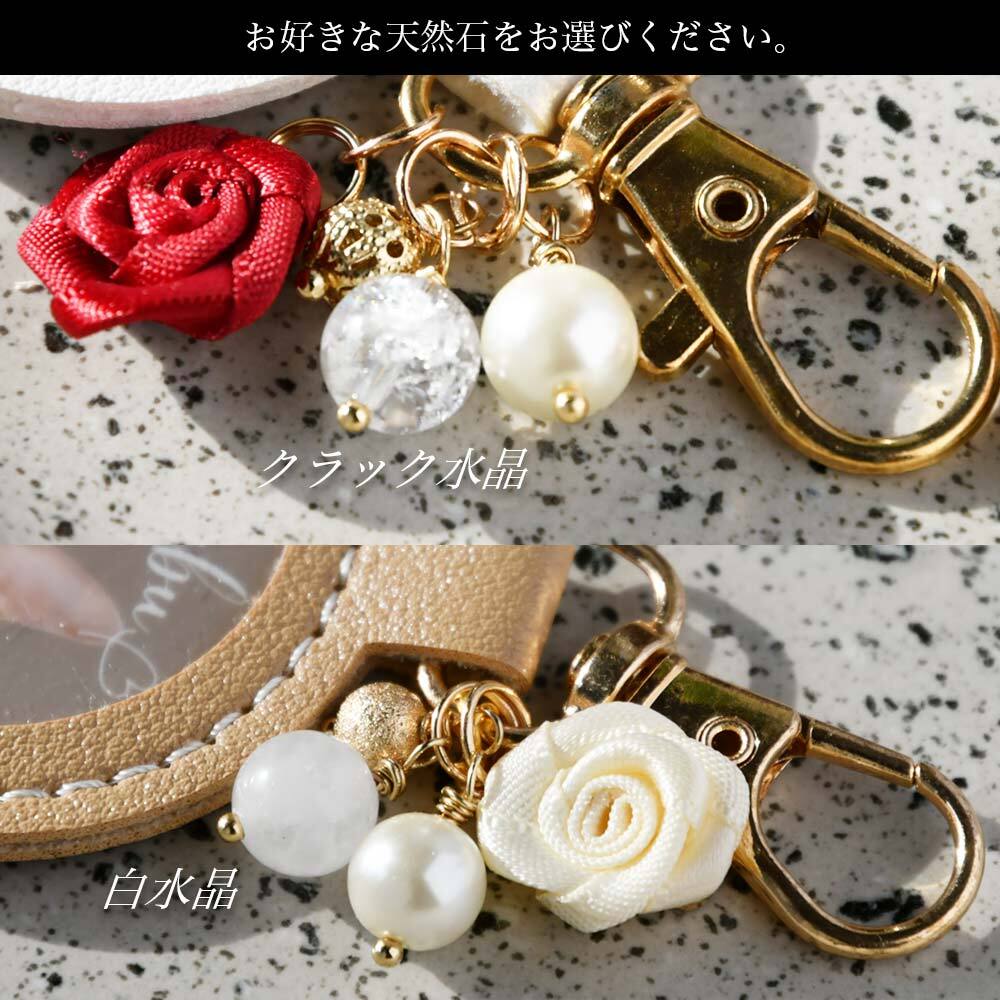 【No.085】 送料無料 バラ 天然石 うちの子グッズ キーホルダー プレゼント 革